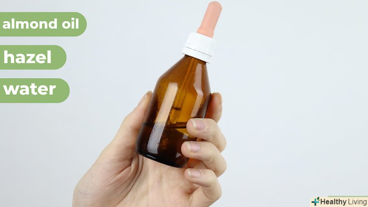 Приготуйте розчин з води, гамамелісу і мигдалевого масла або масла жожоба. цей розчин можна зберігати протягом шести місяців і використовувати для догляду за очима, не побоюючись роздратування. [5]- Змішайте дві столові ложки гамамелісу, дві столові ложки масла жожоба (або мигдалевого масла) і дві столові ложки води в чистому посудині.