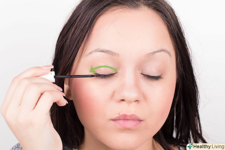 Створіть ілюзію густих вій за допомогою підводки для очей. нанесіть підводку для очей на верхні повіки, щоб вії здавалися густішими. Пальцем злегка потягніть зовнішній куточок вашого століття вгору. Нанесіть чорний олівець для очей уздовж верхньої повіки. Повторіть те ж саме на другому оці.- Щоб посилити ефект, можна покрити чорну підводку шаром чорного водостійкого гелевого олівця. Опустіть олівець для очей в гель і проведіть їм уздовж верхньої повіки. [2]