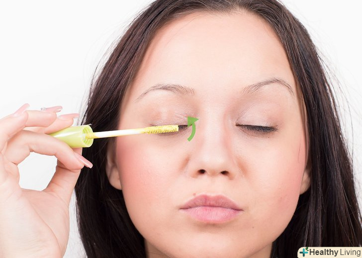 - Рухайтеся від коренів до кінчиків, переміщаючи при цьому пензлик з боку в бік. Подивіться вниз і нанесіть туш на зовнішню сторону вій.
