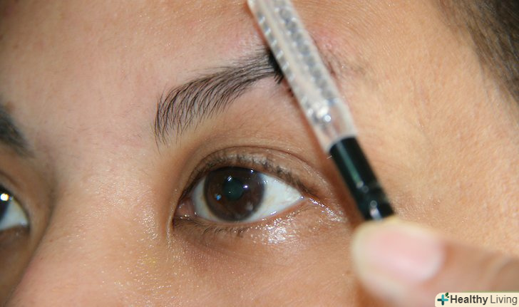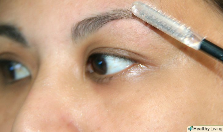 В кінці нанесіть на брову спеціальну косметику. якщо такої немає в наявності, можете вдатися до допомоги вазеліну, але у деяких людей присутня алергія на цей продукт. Засіб для брів трохи схоже на прозору туш. Нанесіть її на ваші брови тими ж рухами, які використовували в попередніх кроках. Якщо ви завдасте занадто багато, то помітите характерний блиск.