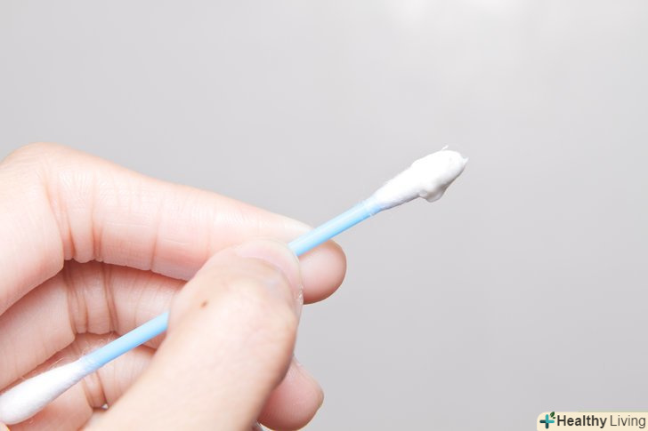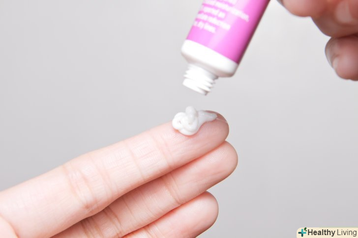 Нанесіть крем на ватяну паличку або аплікатор для нанесення макіяжу. замість ватної палички, можна скористатися безіменним пальцем, оскільки він самий гладкий і найменше використовуваний. Він надасть найменший тиск на чутливу область.