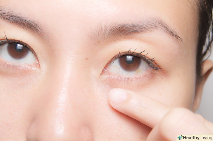 Почніть з області під очима, між вилицею і слізним протокою. ця область знаходиться ближче до носа. Нанесіть крем точковими рухами, починаючи з внутрішньої частини століття у напрямку до зовнішнього куточка ока. Продовжуйте наносити крем точковими рухами на верхню повіку. Нанесіть крем на саму повіку, на лінію вигину і на область нижче брів. Особливу увагу приділіть області з дрібними зморшками і лініями, незважаючи на те, що ця область може виходити за лінію очей.