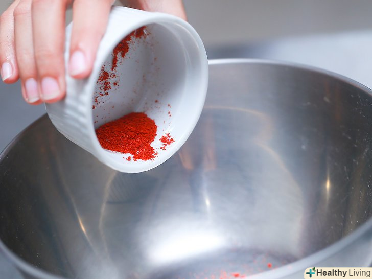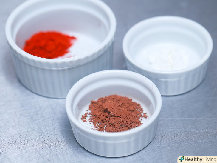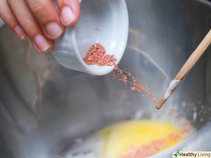 Насипте пудру з квіток гібіскуса або буряковий порошок в ємність для змішування. вам буде потрібно ½ ч. л. бурякового порошку або пудри з квіток гібіскуса. Просійте порошок через сито в миску і роздушіть будь-які грудочки виделкою. Якщо порошок все ще занадто грудкуватий, подрібніть його ще більше в кавомолці або ступці з товкачем.- Якщо буряковий порошок у вас в капсулах, то просто відкрийте капсулу і висипте буряковий порошок. Порожню капсулу викиньте. Продовжуйте відкривати капсули, поки не зберете достатньо бурякового порошку. [3]