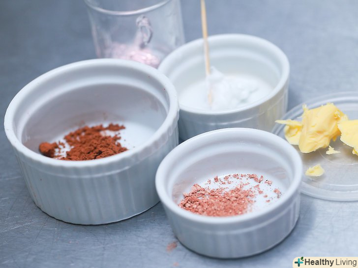 - Спробуйте зробити прості кремові рум'яна. Іноді під рукою є не всі інгредієнти чи немає часу, щоб розтопити масло і віск. У цьому випадку просто додайте 1-2 чайні ложки мінеральної пудри до 1 столової ложки зволожуючого засобу і перекладіть в маленький контейнер. [12]