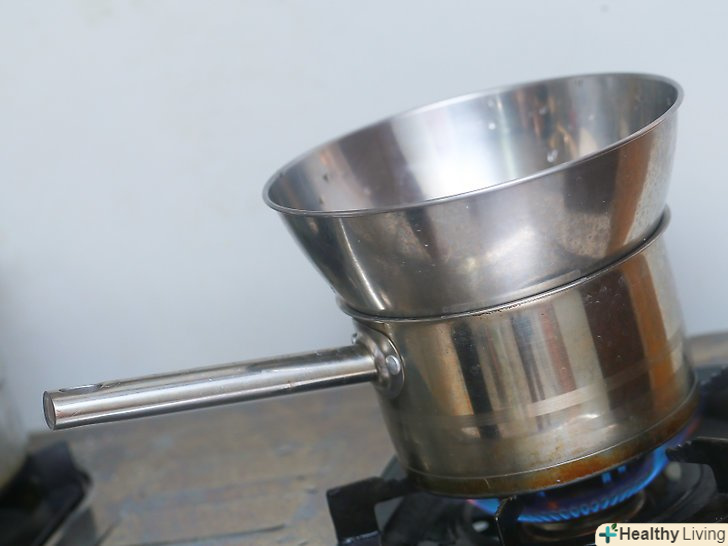 Підготуйте пароварку. налийте в нижню ємність 3-5 см води і помістіть на неї верхню ємність. Поставте пароварку на плиту на середній вогонь.- Якщо у вас немає пароварки, то можна зробити парову баню: налийте у велику каструлю 3-5 см води і помістіть в неї велику миску. Дно миски не повинно торкатися води.
