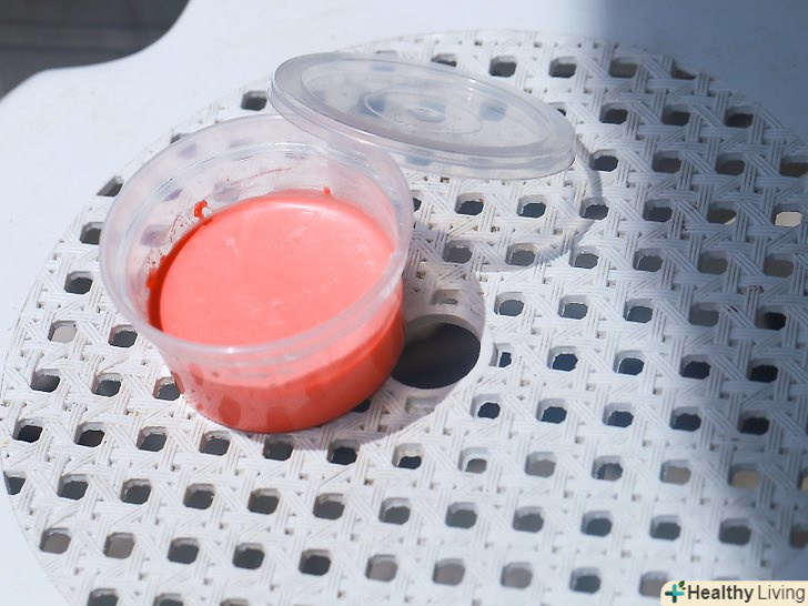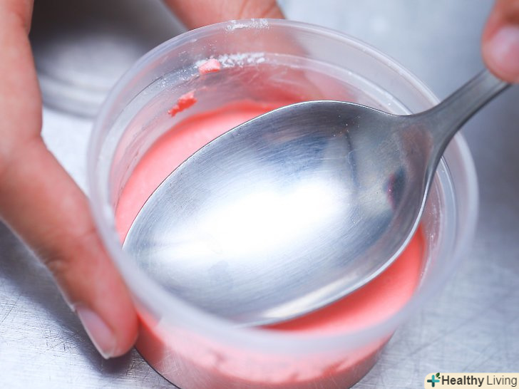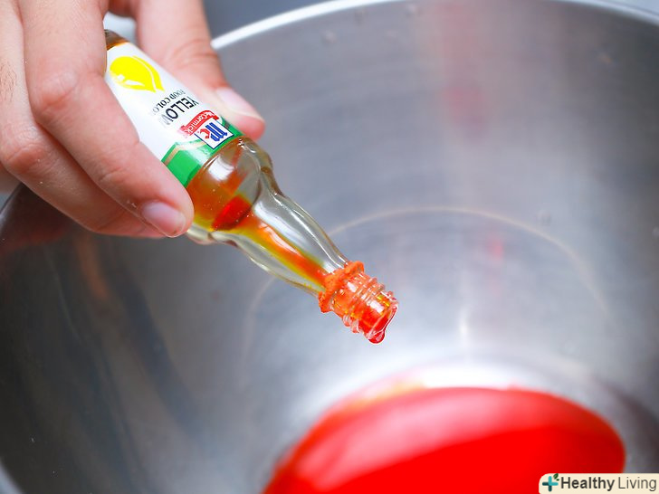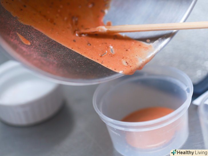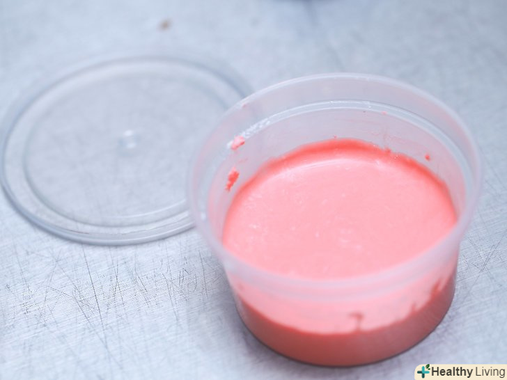 Спробуйте додати в рум'яна інші відтінки. можна залишити рум'яна звичайного рожевого кольору або додати інших барвників, щоб отримати бажаний відтінок. Жовтий харчовий барвник зробить рум'яна більш помаранчевими, а синій — більш фіолетовими. Почніть з однієї краплі за раз і ретельно перемішуйте перед додаванням чергової порції барвника. Повторюйте, поки не отримаєте бажаний колір. [2]- Якщо рум'яна виходять занадто помаранчевими або фіолетовими, додайте 1-2 краплі червоного харчового барвника.