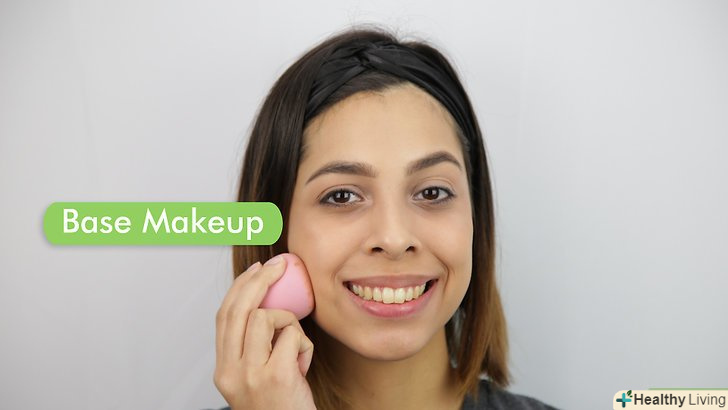 ЗавершітьОсновний макіяж . зараз не потрібно фарбувати губи або очі: спочатку нанесіть праймер і тональну основу. Якщо ви хочете закріпити макіяж пудрою або спреєм для фіксації макіяжу, то можете зробити це зараз. Якщо наносити ці кошти після блискіток, то блискітки можуть відклеїтися. [14]- Якщо хочете отримати просте обличчя «без макіяжу», то можна не використовувати тональну основу і праймер.