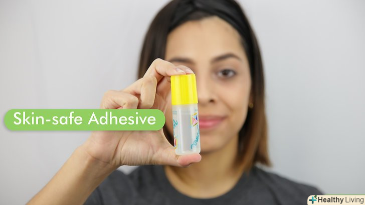 Виберіть клей, безпечний для шкіри. Гель для волосся-прекрасне і недороге рішення для більшості людей, включаючи власників чутливої шкіри. [15] також можна використовувати спеціальний клей для блискіток, гель алое вера або вазелін.- Можна купити спеціальний клей для косметичних блискіток в інтернеті або в магазинах косметики.