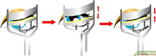 Відкрийте щипці і помістіть всередину вії верхньої повіки. злегка прикрийте очі, потім відкрийте — вії повинні рухатися всередині щипців. Завжди тримайте щипці так, щоб отвір був паралельно очам.