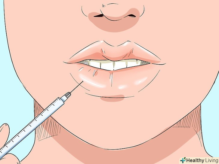 - Спробуйте використовувати ботокс. часом ботокс плутають з філерами для збільшення губ, але він діє інакше. Ін'єкція ботокса вводиться в середину верхньої губи, через що м'язи в даній зоні повністю розслабляються і губа починає трохи «вивертатися» вгору. [11]