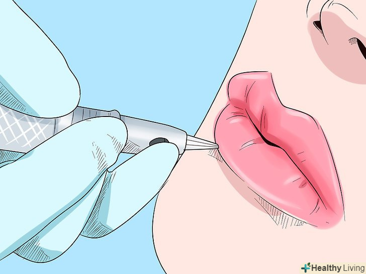 Подумайте про перманентний макіяж. якщо вам набридло кожен раз підводити губи, можливо найбільш підходящим для вас кроком стане перманентний макіяж. При цьому зовнішні контури губ татуюються, що робить їх візуально більше і яскравіше. [13]- Якщо ви все ретельно обдумали і вирішили, що перманентний макіяж з ефектом збільшення губ — це саме те, що Вам необхідно, обов'язково знайдіть хорошого фахівця, який дозволить вам домогтися потрібного образу.