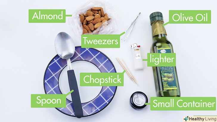 - Спаліть мигдаль. Візьміть мигдаль пінцетом і використовуйте запальничку, щоб підпалити його. Продовжуйте використовувати запальничку, щоб спалити мигдаль, поки він не перетворився на чорний попіл.