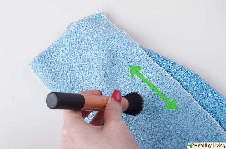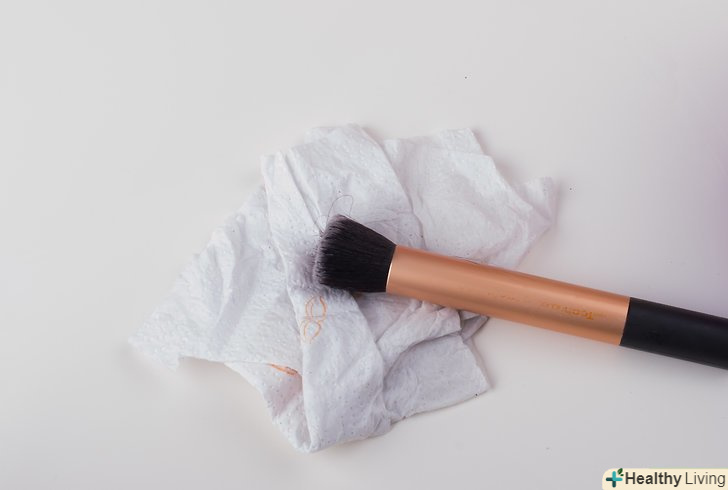 Обробіть кисті очищувачем і витріть рушником. розпиліть трохи очищувача на щетинки кистей. Проведіть кистями по тканинному або паперовому рушнику. Зачекайте хвилину або дві, щоб кисті просохли, а потім використовуйте їх за призначенням. [10]- Доторкніться до щетинок перед тим, як почати працювати з кистями, щоб переконатися, що очищувач повністю висох.