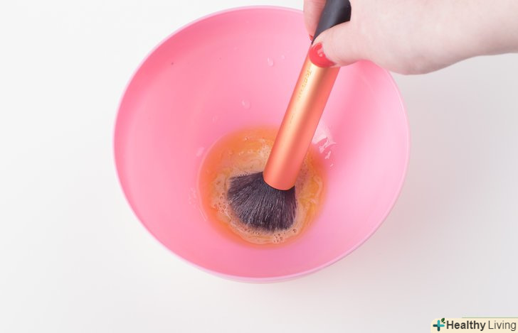 Змішайте миючий засіб і оливкову олію. змішайте в невеликій тарілці 2 частини антибактеріального засобу для миття посуду з 1 частиною оливкової олії. Збийте їх ложкою до однорідного стану. [1]- Антибактеріальне мило знищить всі мікроби і бактерії, а оливкова олія допоможе зруйнувати засохлу косметику, що дозволить очистити кисті.