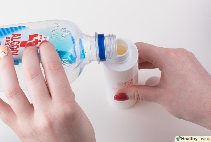 Додайте воду і масло. налийте в пляшечку зі спиртом 60 мл дистильованої води і 10-15 крапель улюбленого ефірного масла. Струсіть пляшку, щоб перемішати всі інгредієнти. [9]- Завдання ефірного масла — перебити спиртовий запах очищувача, тому можете використовувати будь-який аромат, який вам до душі. Або ж додайте масло з антибактеріальними властивостями, таке як евкаліптова, м'ятна, лавандова або масло чайного дерева.