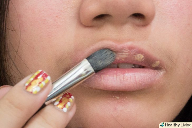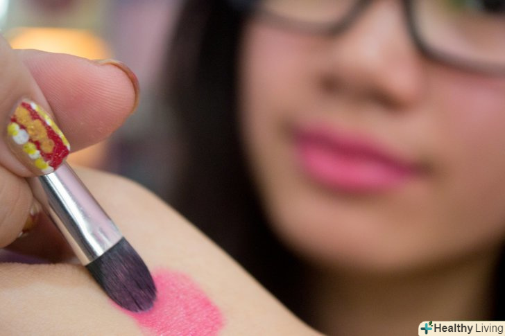 Нанесіть на тильну сторону долоні невелику кількість губної помади, за допомогою пензлика перенесіть помаду на губи.