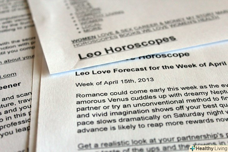 Подумайте самі, наскільки дурною є сама концепція гороскопу. Люди, народжені в один і той же місяць, не володіють ідентичними рисами характеру, а також ви не завжди закохуєтеся в тих, хто має сумісний з вами знак. Зовсім не факт, що вам пощастить, якщо журнал вам про це повідав. Ці журнали були написані тільки заради розваги для людей, які отримують задоволення від читання узагальнених заяв або умовних джерел надії.- Більш докладні гороскопи, написані професійними астрологами, засновані на їх умінні читати характер людини. Такі гороскопи також сповнені узагальнень, адже з кожним з нас на тижні трапляється щось хороше і щось погане,-це ж не Вища математика. Тільки ви вибираєте, що вам робити. Якщо ви вважали за краще підлаштувати своє життя під опис, то це ваш вибір. Повірте, немає нічого сильнішого, ніж самопереконання.