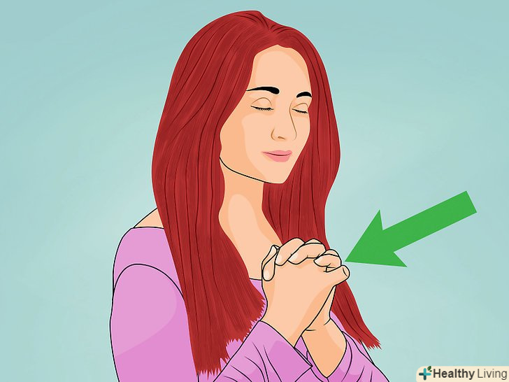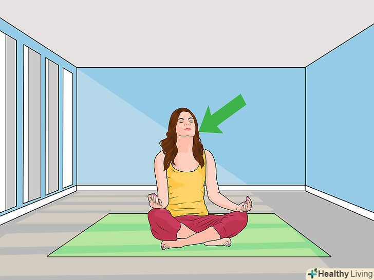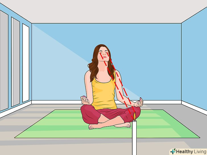 Зручно сядьте. Сядьте на підлозі або на подушку, схрестивши ноги (по-турецьки або в позі лотоса). Головне, щоб вам було зручно. Якщо вам незручно сидіти зі схрещеними ногами, то можете сісти на коліна або на стілець.- Коли сядете зручно, простежте, щоб спина була прямою, Тримайте голову прямо, постарайтеся розслабити спину і плечі. [15]