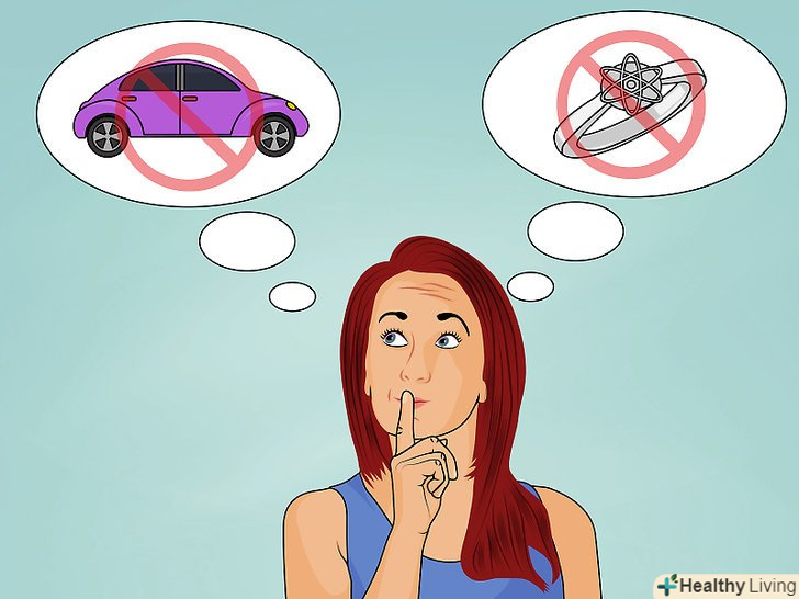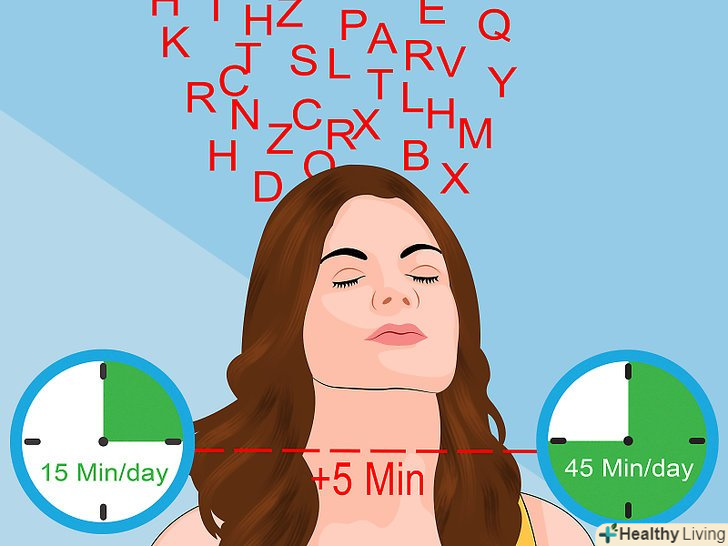 Дозвольте думкам текти. Одна з головних цілей медитації — очистити розум і знайти спокій. Для цього ви повинні дозволити своїм думкам приходити і йти, не чіпляючись ні за одну з них. Якщо в якийсь момент ви зрозумієте, що зачепилися за якусь думку, то зупиніться і знову сконцентруйтеся на своєму диханні.- Медитуйте приблизно по 15 хвилин на день протягом першого тижня. Пізніше ви зможете зробити свої медитації довшими, наприклад, збільшуючи їх на п'ять хвилин щотижня. Поставте собі за мету медитувати по 45 хвилин кожен день. [18]