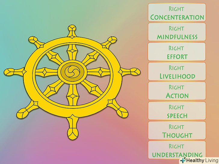 Живіть відповідно до благородного восьмеричного шляху. взагалі кажучи, двома стовпами буддизму є чотири благородних істини і благородний восьмеричний шлях. Чотири благородних істини можна зрозуміти основу віри в буддизмі, а благородний восьмеричний шлях — це набір правил і практик, що спираються на цю віру. [3] життя по Восьмеричному шляху включає в себе наступне:- Правильна мова, дії і спосіб життя. Досягти всього цього можливо, тільки живучи відповідно до п'яти заповідей.