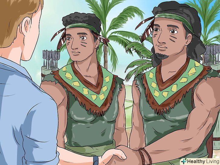 Вирішіть, які традиції будуть прийнятними, а які ні.Подумайте, як істоти будуть взаємодіяти в громадських місцях (на вулиці, в транспорті, в місті чи селі). Чи вітають істоти, що належать до однієї групи, один одного особливим чином? Якщо ви визначите допустимі і неприпустимі традиції, вам буде зрозуміліше, як персонажі можуть взаємодіяти один з одним.[20]- Припустимо, люди вітають один одного за допомогою комп'ютеризованих окулярів. Або, можливо, якісь істоти вітають один одного мімікою і особливим рухом руки. Незнання заведеного порядку може призвести до певних наслідків (наприклад, до вигнання з групи або громади).