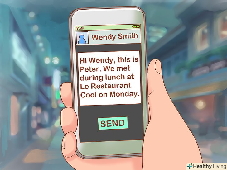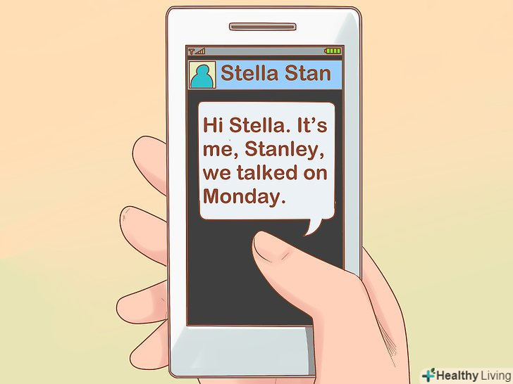 Нагадайте їй про вашу останню зустріч. якщо ви недавно познайомилися з дівчиною, Представтеся ще раз; якщо ви добре знайомі з дівчиною, але ніколи не листувалися з нею, згадайте про те, що вона дала вам свій номер.- Якщо у неї немає Вашого номера, вона може не знати, що це ви пишете їй повідомлення. Наприклад, можна написати: "Привіт, Ольга. Це я, Єгор, ми з тобою спілкувалися в понеділок".