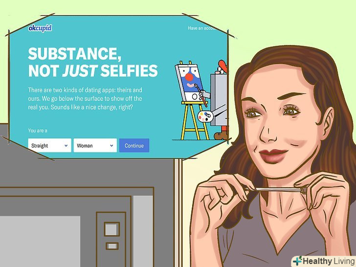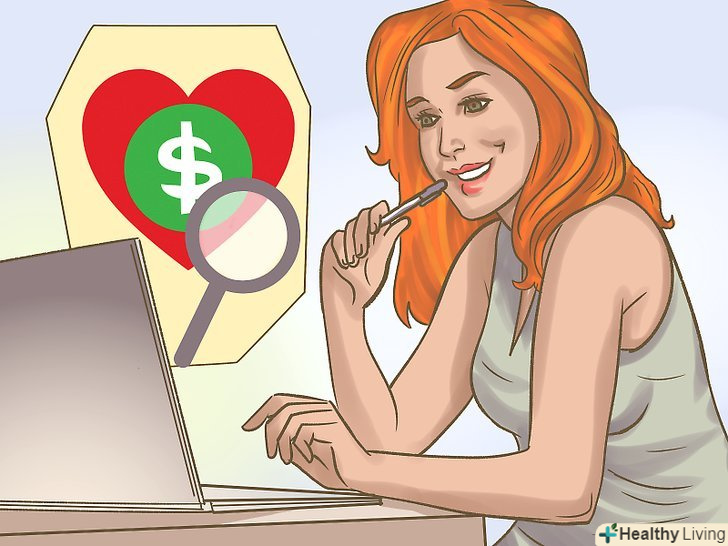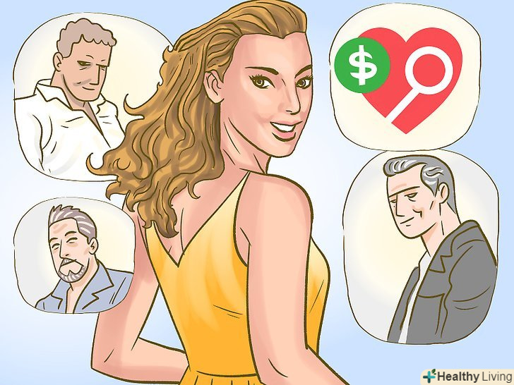 Перегляньте звичайні сайти знайомств. Якщо ви соромитеся реєструватися на традиційних сайтах знайомств для того, щоб шукати там «спонсора» або не хочете прямо заявляти про свої цілі, можете переглянути кілька сайтів, щоб знайти чоловіка, який буде давати вам гроші і слати подарунки.- Можете використовувати фільтри, щоб знайти правильного чоловіка, наприклад, робити запит за рівнем його зарплати або професії.
