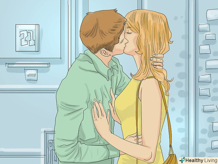 Спробуйте поцілувати її, коли настане відповідний момент. якщо розмова пройшла добре, і ви перебуваєте в приватній обстановці, є ймовірність, що вона захоче вас поцілувати. Головне-переконатися, що вона цього хоче. Для початку обов'язково встановіть легкий фізичний контакт, наприклад, тримайте її за руку або злегка приобніміте за плечі. Дочекайтеся паузи в розмові і загляньте глибоко в її очі, наближаючи до неї свої губи. Якщо вона потягнеться до вас і не буде відводити погляд, спробуйте її поцілувати.- Ніколи не намагайтеся поцілувати її, якщо вона не показує, що хоче цього.