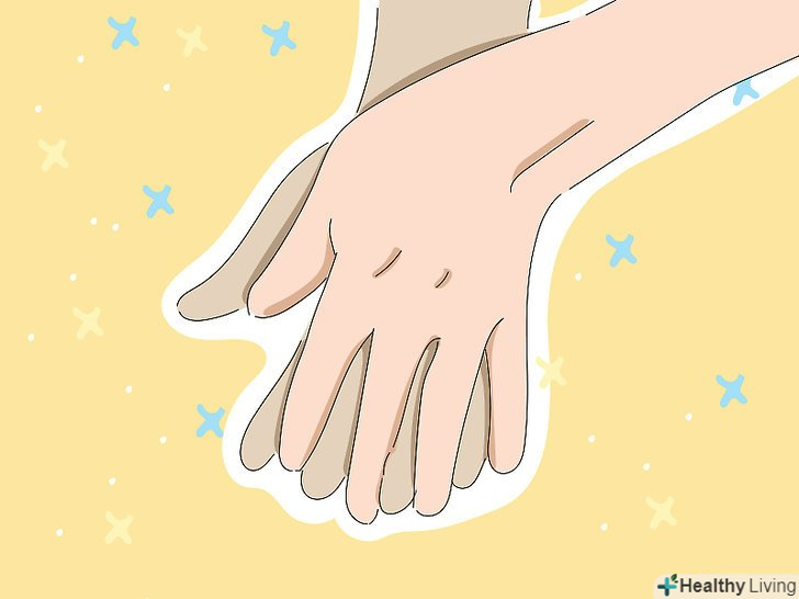 Вступите в контакт. ви повинні зробити деякий фізичний контакт, перш ніж вирішите взяти її за руку. Якщо ви стоїте, покладіть руку біля її плеча або передпліччя і поступово просувайтеся до її долоні або продовжуйте акуратно робити "випадкові" торкання руки до тих пір, поки взяття її долоні в вашу не буде виглядати природно. Коли ви будете готові вступити в контакт, ви можете вибрати з безлічі способів, як тримати її за руку.- Постарайтеся бути максимально розслабленим, перш ніж вступити в контакт. Якщо будете нервувати, швидше за все, у вас будуть спітнілі руки! Звичайно, це не найгірше в світі, але якщо ви можете уникнути цього, буде здорово.