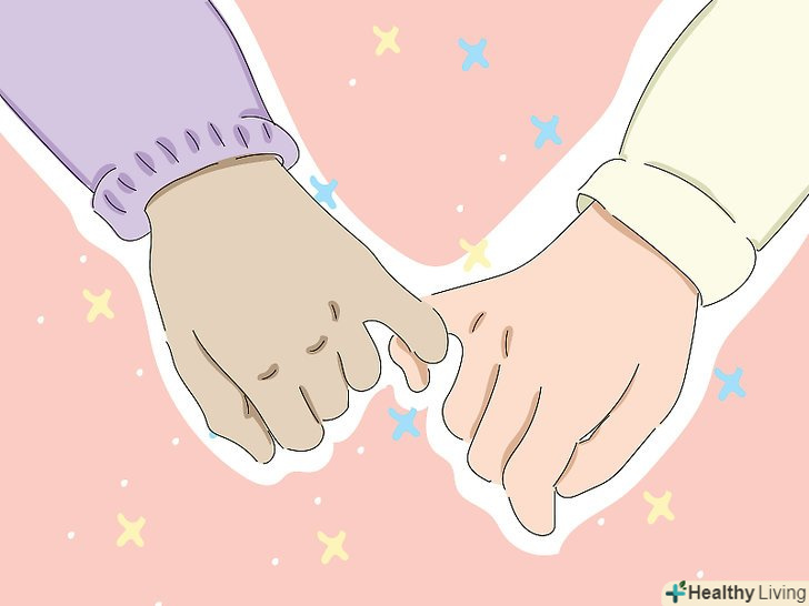 Дотик мізинців. це ще один кокетливий і цікавий спосіб триматися за руки. Просто посуньте мізинець в сторону її мізинця і зімкніть пальці. Це весело, тому що ви можете відсувати і зближувати пальці ближче один до одного. Ви також можете спробувати цей спосіб під час ходьби, це може бути цікавим, якщо ви будете трохи похитувати руками вперед і назад. Вам, ймовірно, слід почекати, поки просте тримання за руки стане для вас природним, перш ніж зробити цей крок.