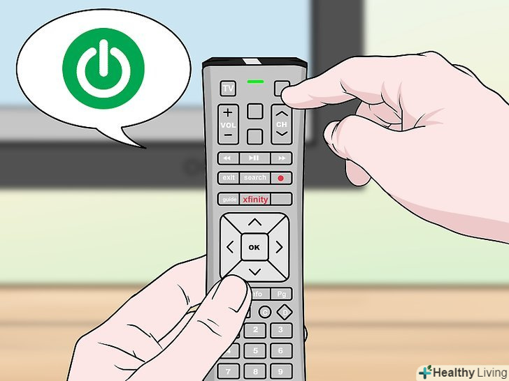 Натисніть кнопку живленняна телевізорі. ця кнопка відзначена значком у вигляді кола з рисою.
