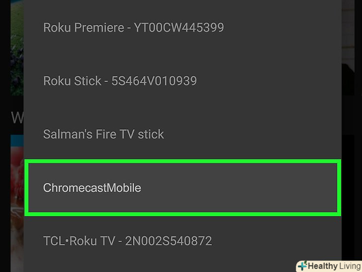 Торкніться кнопки трансляції. вона знаходиться в правому верхньому куті відео. З'явиться список пристроїв.