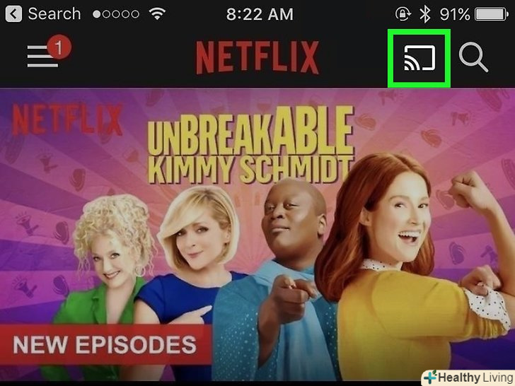 - Якщо на вашому смартфоні встановлено додаток Netflix, відтворіть відео на смартфоні, а потім натисніть кнопку трансляції і виберіть ігрову приставку. Відео відобразиться на екрані телевізора, причому відтворенням ролика можна управляти зі смартфона. Кнопка трансляції відзначена значком у вигляді квадрата з трьома вигнутими лініями в нижньому лівому кутку квадрата.
