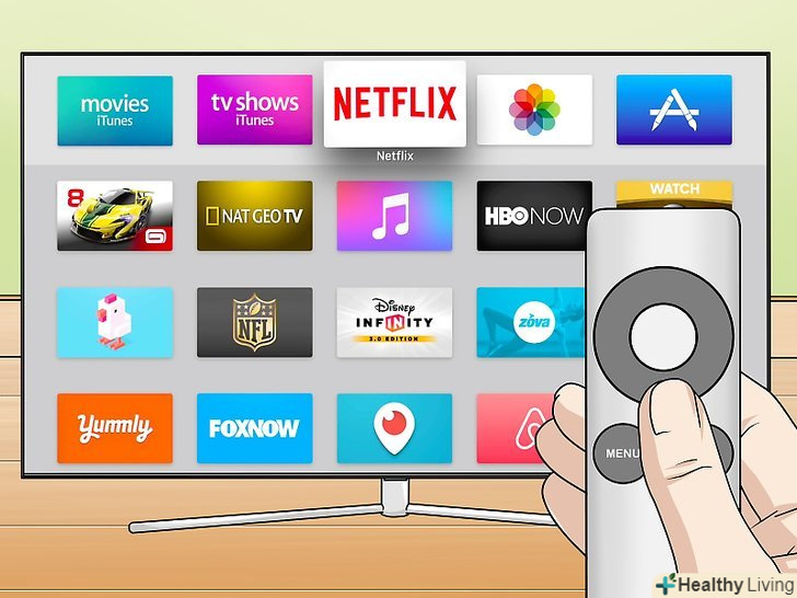Скористайтеся пультом Apple TV, щоб знайти і запустити додаток Netflix. Ця програма знаходиться вгорі списку додатків.
