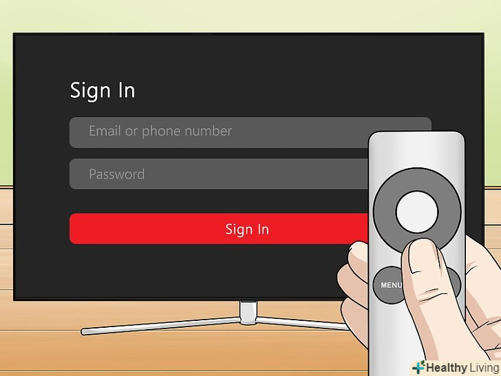 Авторизуйтесь в Netflix. за допомогою екранної клавіатури Введіть адресу електронної пошти та пароль, а потім виберіть програму. Введіть свої облікові дані, виберіть " Sign In "(Увійти), а потім натисніть «Enter» і «Ok».- Щоб переглядати потоковий контент, потрібна підписка на відповідний тарифний план Netflix. Будь потоковий тарифний план дозволить користуватися додатком на телевізорі. Якщо у вас немає облікового запису Netflix,створіть його на сайті Netflix.