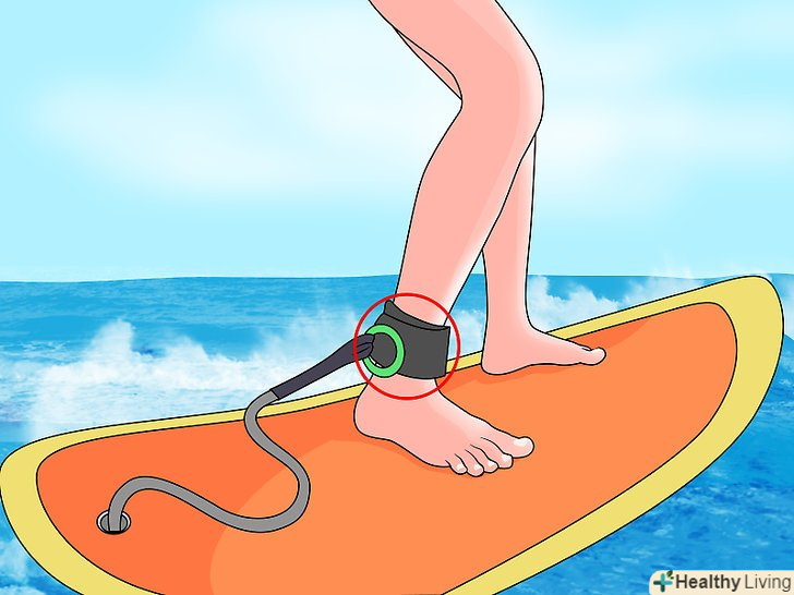 Візьміть лиш (повідець) для дошки. [14] Ліш дозволить вам не поплисти далеко від серфборда. Якщо ви зісковзнете, навряд чи вам захочеться опинитися в безодні хвиль без дошки. Вам також не сподобається, якщо вашу дошку віднесе в бік інших серфінгістів або вона розіб'ється об скелі. З лишем можете бути спокійні, він міцно з'єднає вас з серфбордом, і кріпиться він до хвостової частини дошки.