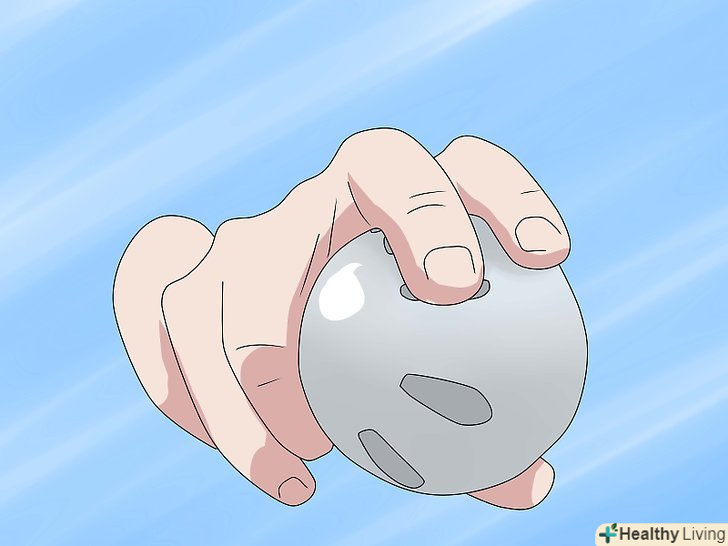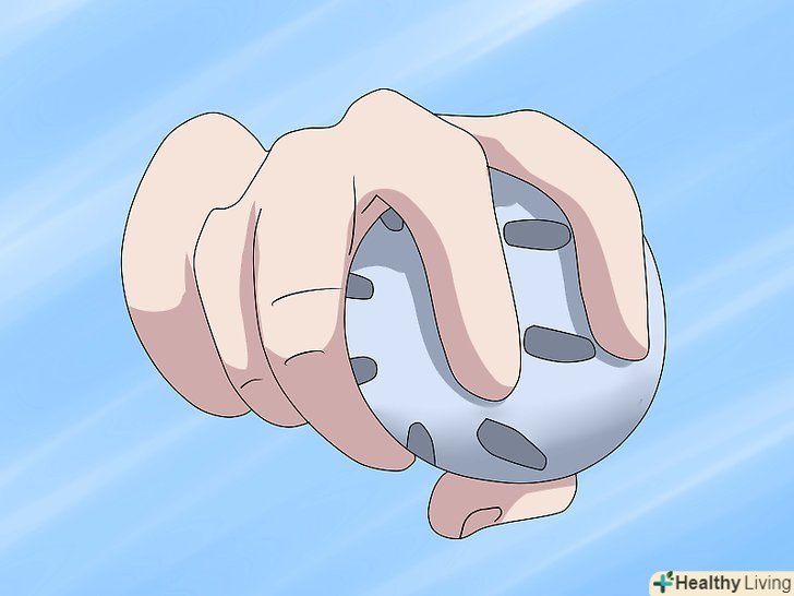 Палмбол. Тримайте м'яч між великим пальцем і долонею, пальці повинні лежати зверху. Експериментуйте з тим, як розташувати отвори або скільки пальців має бути зверху!