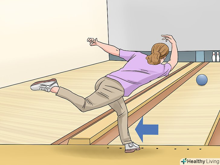 Пересуньтеся в сторону промаху. якщо куля пішов правіше мети, при наступному кидку посуньтеся на одну точку правіше центру, а якщо він пішов вліво – на точку лівіше. На перший погляд це може здатися нелогічним, але якщо куля відхиляється в сторону, це означає, що він закручується занадто рано або занадто пізно. Зсунувшись у бік промаху, ви наблизите кулю до центру.- Кілька пробних кидків дозволять вам визначити оптимальну початкову позицію. Кидаючи з цієї точки, ви зможете остаточно відкоригувати свої рухи таким чином, щоб кожен раз вибивати страйк.