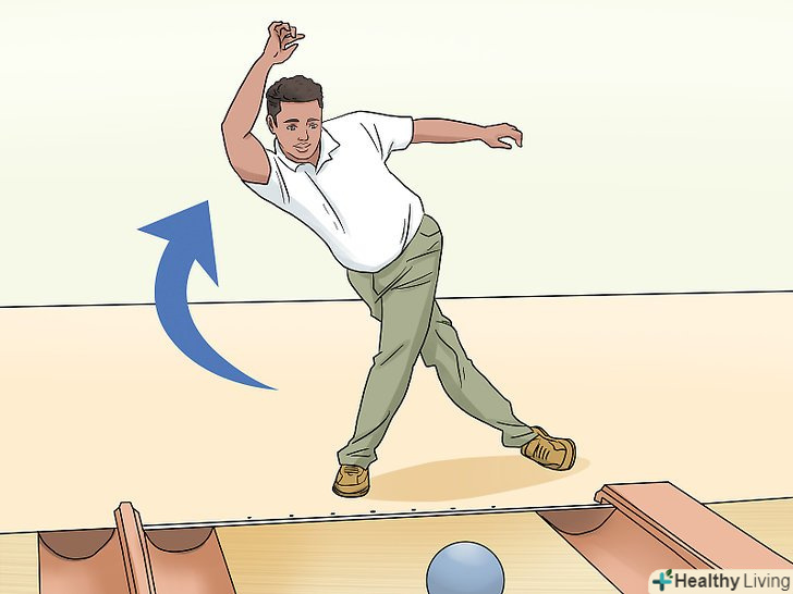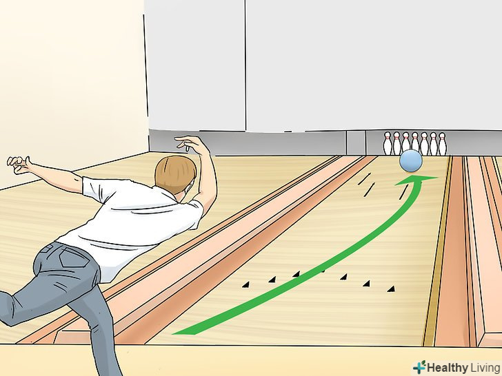 Тренуйте підкрутку. професійні гравці в боулінг, кидаючи кулю, трохи підкручують його. Так як кишеня, в який ви цілитеся, знаходиться трохи збоку, кращим способом потрапити в нього буде Підкрутка кулі від краю доріжки в його сторону. Саме тому слід мітити в стрілку збоку від центру.- Кращий спосіб забезпечити підкрутку кулі полягає в тому, щоб намітити і зайняти правильну позицію відразу після кидка. Після того, як Ви відпустите кулю, ваша рука повинна піднятися вгору так, як ніби ви збираєтеся "потиснути руку" тієї кеглі, в яку Ви метіться. [1]