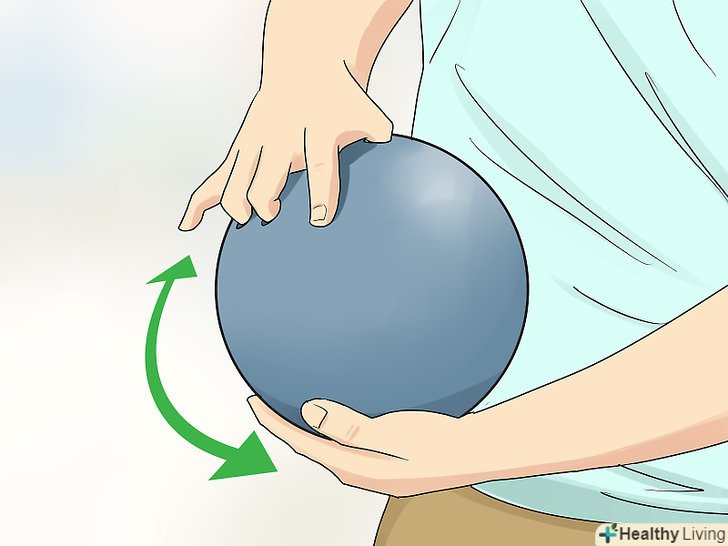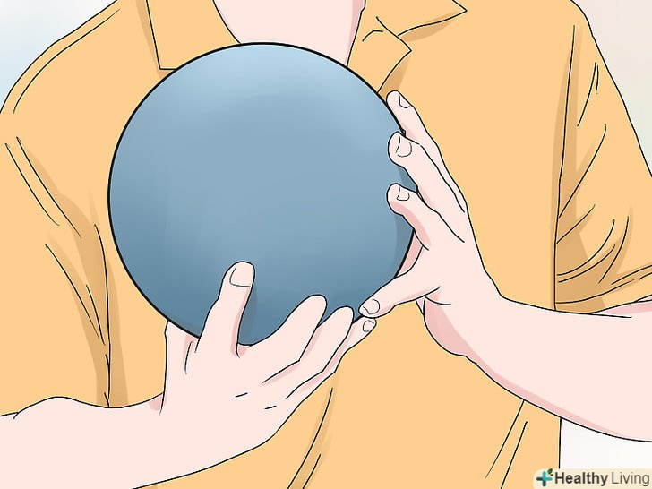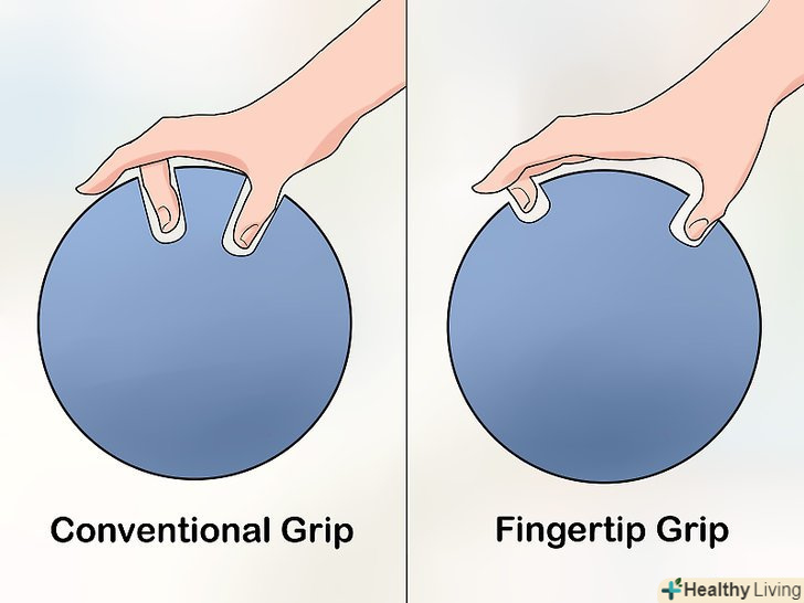 - Виберіть кулю з відповідними отворами. Візьміть кулю, підтримуючи його знизу своєю неосновною рукою. Вставте в найширший отвір великий палець своєї основної руки, а в два інших – середній і безіменний палець.