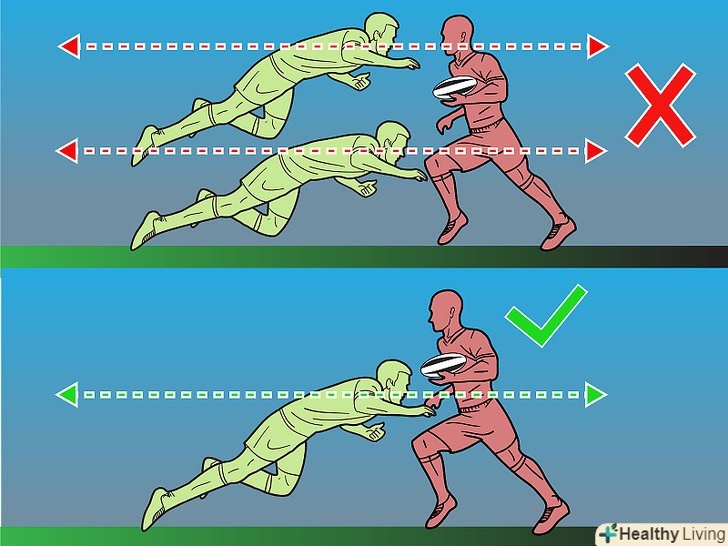 - Ніколи не намагайтеся застосувати прийом, якщо ви обидва біжите на повній швидкості назустріч один одному, так це дає шанс супернику ухилитися. Перед контактом сповільніться і тримайтеся прямо навпроти суперника. Так буде простіше не дати йому ухилитися в останній момент.