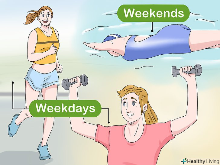 Чергуйте вправи, щоб вони вам не набридали. якщо робити одне і те ж кожен день (бігати по одному і тому ж маршруту, займатися під одне і те ж Відео), Вам швидко стане нудно. Крім того, коли організм пристосується до вправ, швидше за все, тіло перестане змінюватися, і це демотивує вас. Щоб цього не відбувалося, міняйте вправи. [13]