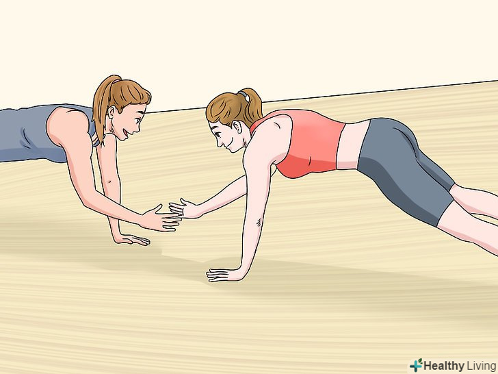 Знайдіть партнера для тренувань, якщо вам хотілося б, щоб хтось вас контролював. деяким подобається займатися на самоті, проте компанія друга може допомогти дотримуватися свого плану. Можна займатися разом або просто обговорювати тренування і досягнуті цілі в кінці кожного дня. [4]- Розмова з другом може допомогти вам виявити бар'єри на шляху до регулярних тренувань. Якщо ви будете пояснювати, чому ви пропустили тренування, ви задумаєтеся про справжні причини: про сумніви в собі, стресі, страху.