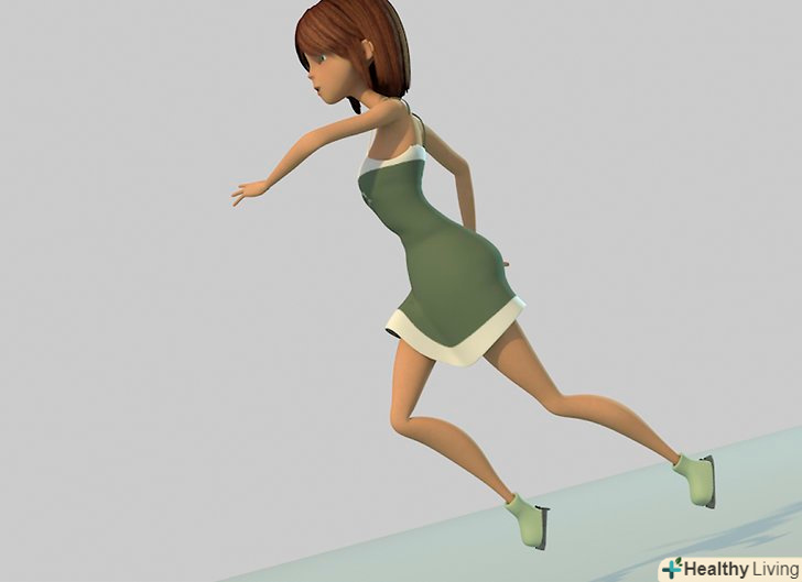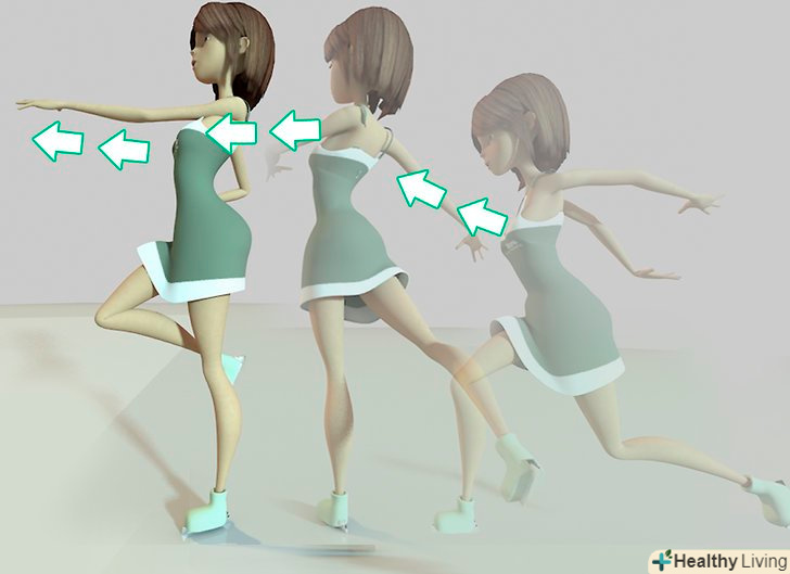 Ковзайте на правій нозі назад-назовні, переконайтеся, що ви набрали достатню швидкість і зберігаєте баланс. ваші руки повинні бути підняті.