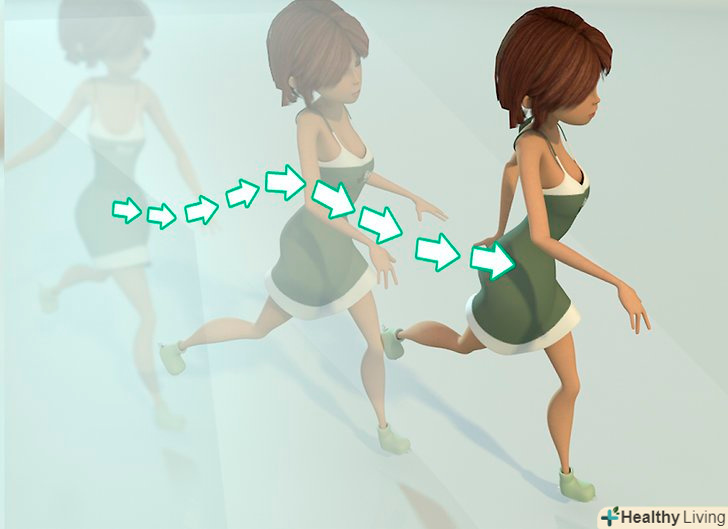 Скажіть собі "підйом". виштовхніть ковзаючу ногу, використовуючи носок, підніміть коліно і зімкніть руки.