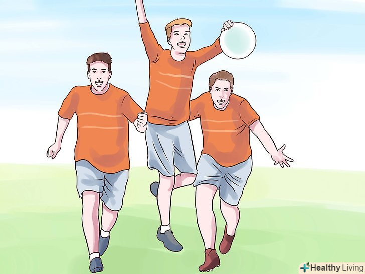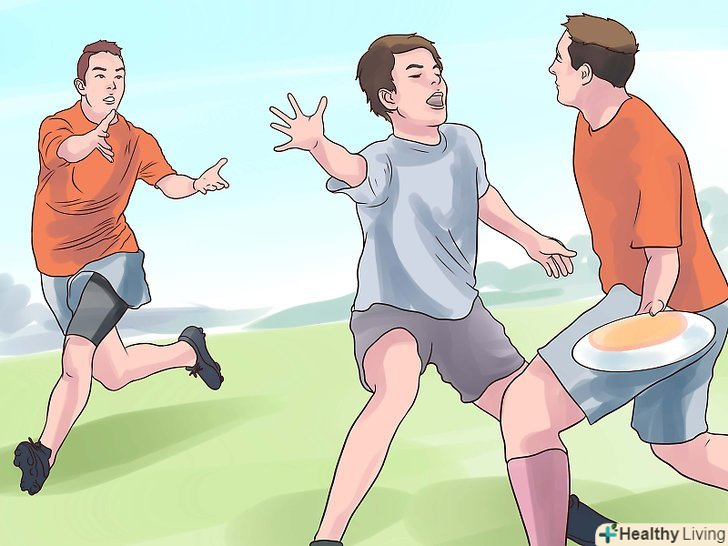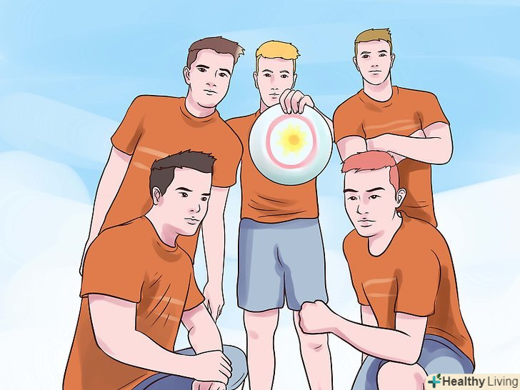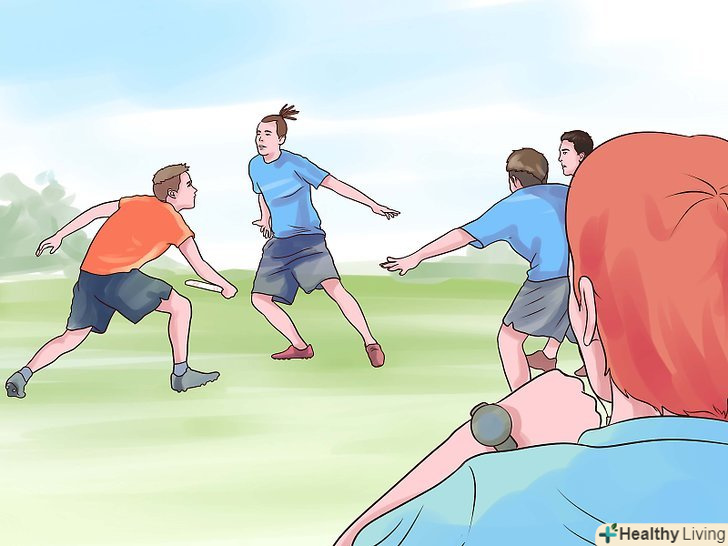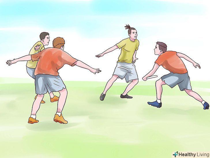 Навчіться грати. так само, як і в футболі або іншому виді спорту, де потрібно забивати гол, у вашій команді є кілька гравців, які займаються захистом своїх воріт або гольової зони. Вони намагаються забити гол на іншому кінці поля - у ворота противника. Необхідно переміщати диск фрісбі, передаючи його гравцям своєї команди, щоб забити гол.- Гравець, у якого в руках фрісбі не може рухатися, а також не може тримати диск довше 10 секунд. Решта гравців повинні рухатися по полю, щоб спробувати відкритися для передачі.
