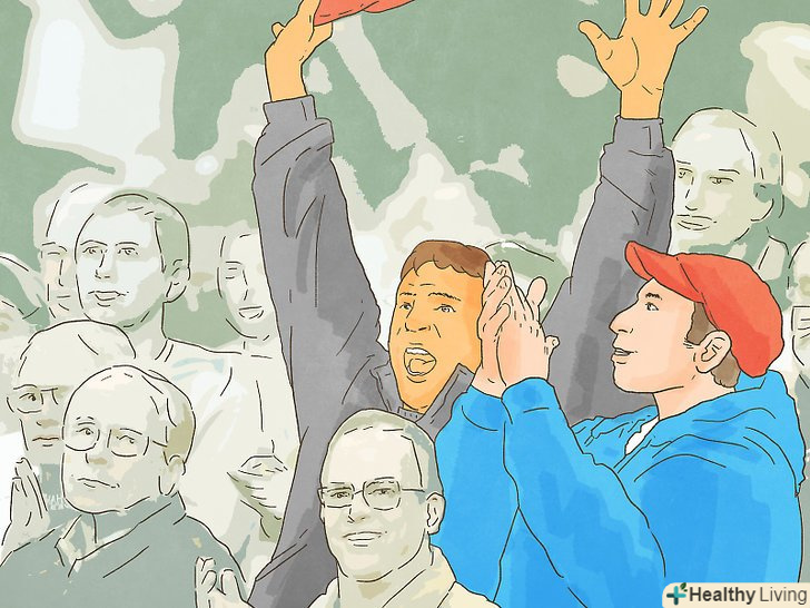 Одягніться в кольори своєї команди. Покажіть свою відданість і купуйте форму команди. Можна придбати комплект форми, кофту, бейсболку або інші речі. Також можна переглянути всі наявні в шафі речі і вибрати одяг відповідного забарвлення. Покажіть свою підтримку і ототожнюйте себе з палкими шанувальниками, щоб саме так вас і сприймали інші глядачі. [13]- Можна навіть використовувати грим або фарбу для шкіри, щоб нанести кольору улюбленої команди.