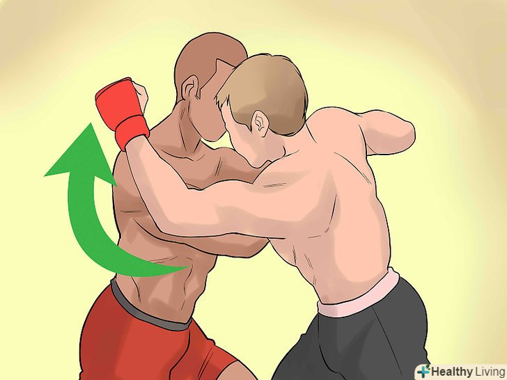 Використовуйте блокування тіла, якщо ви пропускаєте удар. доброю новиною є те, що ви, ймовірно, працюєте досить близько, тому можете захопити тулуб в замок. У замку ви будете в основному охоплювати руками талію противника і голову поруч з головою противника. Щоб перекинути супротивника на килимок, оберніть свою домінуючу ногу позаду опонента і поверніть плечі так, щоб збити його з ніг і перекинути на землю.- Будьте готові отримати коліном в живіт або захищати лікті. Це не самий оборонний стан, але якщо ви виконаєте його досить швидко, це може бути хорошим способом вийти з делікатної ситуації і отримати багато пошкоджень.