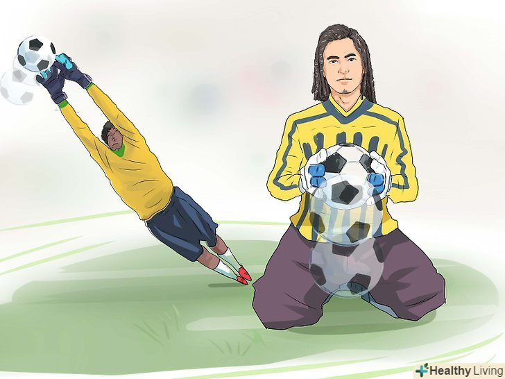 - Як воротаря, вам також знадобиться тренування рук для їх спритного поводження з м'ячем. Якщо будете кидати і ловити який-небудь предмет з вашим тренером і командою, це допоможе напрацювати потрібні навички. [24]