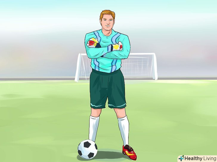 Познайомтеся з оснащенням голкіпера. крім стандартної екіпіровки, необхідної будь-якому футбольному гравцеві, що включає бутси, щитки і футболку, голкіпер також повинен слідувати нормам і особливостям його оснащення згідно позиції на полі. Починаючи з рукавичок і закінчуючи спеціальною футболкою, все оснащення воротаря допомагає іншим гравцям розпізнати його на полі.- Воротар зобов'язаний носити форму, довгі гетри, щитки і футбольні бутси. [6]